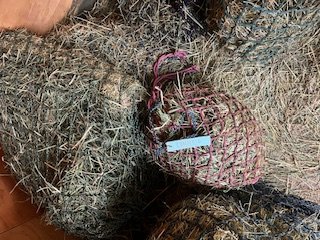 We use hay bags for the horses to extend their meal time and know exactly how much they are eating. We fill hay bags daily for the horses meals.