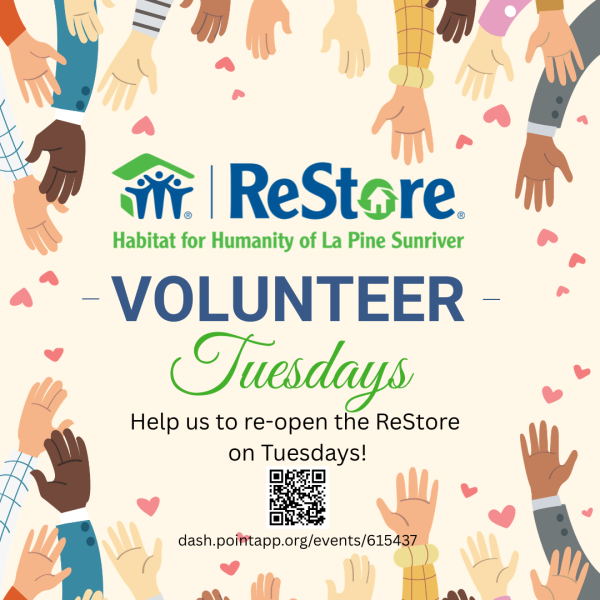 We are working to re-open the ReStore on Tuesdays, but will need volunteer support. we are looking for volunteers that can commit to a shift on most Tuesdays in May and June.